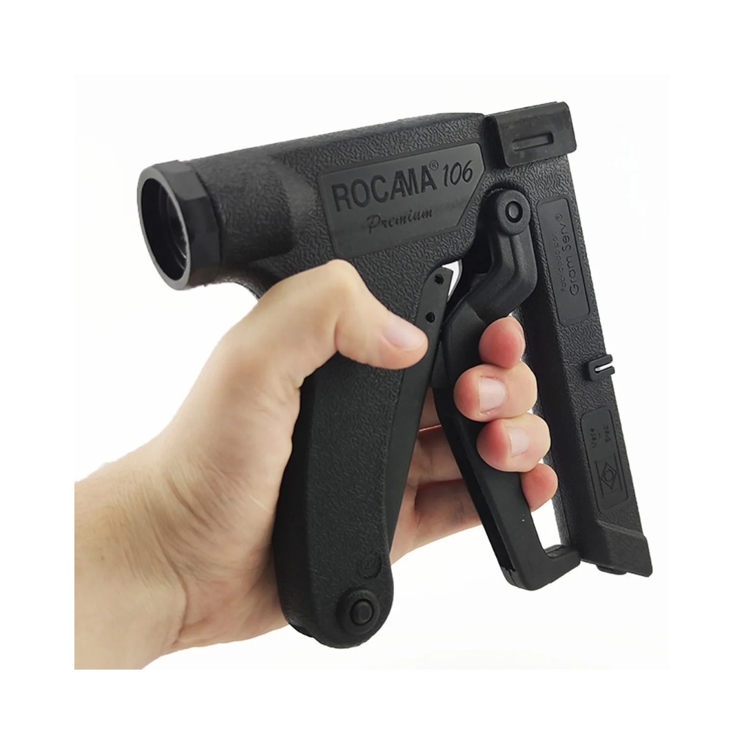 O Grampeador Manual Rocama é leve, resistente, prático e altamente durável. O nome do modelo faz referência ao tipo de grampo ideal para que o ele trabalhe da melhor forma possível. Seu uso pode ser feito de forma contínua, sem pausa para recarga. Sua durabilidade está em torno de 100 mil acionamentos (um grampeador convencional consegue ser acionado cerca de 8 mil vezes até precisar de manutenção). No entanto, esta quantidade pode variar de acordo com o bom ou mal uso do equipamento. Não necessita de eletricidade nem ar comprimido para que funcione, pois conta com um mecanismo que funciona somente com a pressão de um aperto de mão. É totalmente compatível com grampos da Linha 106mm de comprimento.