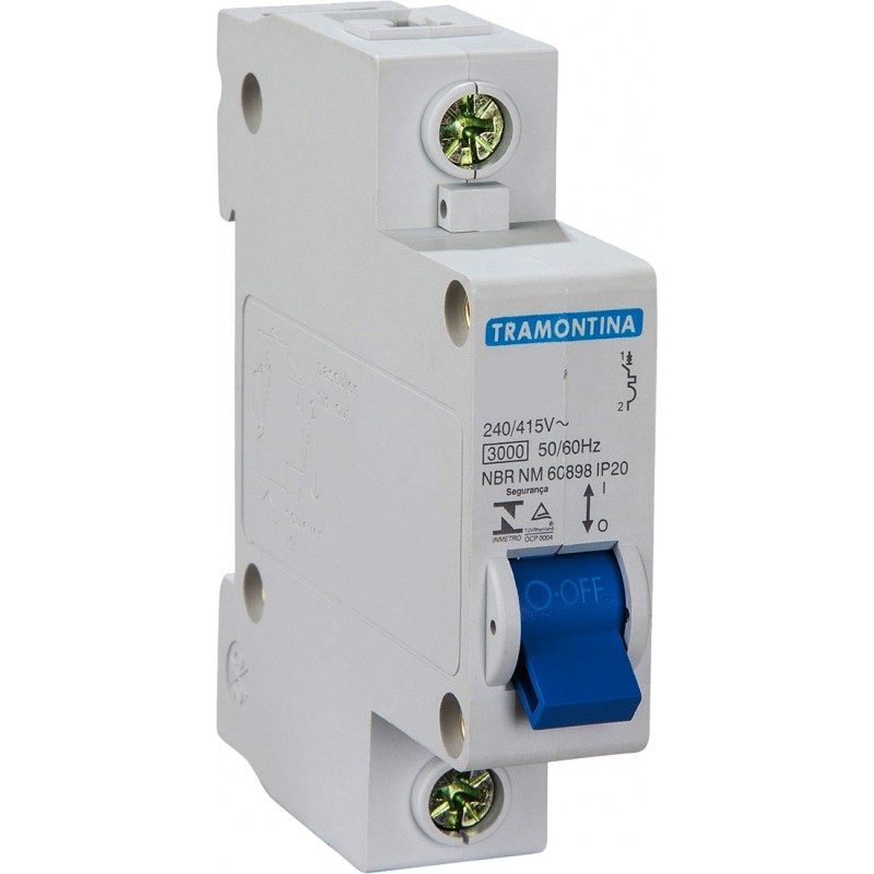 O disjuntor TR3KA são dispositivos eletromecânicos de segurança que desarmam a rede elétrica de determinado circuito em caso de sobrecarga e curto-circuito. Além de manter a integridade da isolação, garantindo a vida útil dos condutores, o disjuntor proporciona um funcionamento adequado da instalação e dos equipamentos a ela conectados. Por isso, são instalados no quadro de distribuição em número compatível com os circuitos e dimensionados conforme a potência de cada equipamento, número de lâmpadas e tomadas de cada circuito. O disjuntor da Tramontina possuem montagem e desmontagem individual, sem necessidade de desconectar todo o barramento; conexão dos terminais para cabo e barramento em ambos os lados da peça, otimizando o tempo de instalação do dispositivo no quadro; e indicador de posição liga/desliga, que informa o real status de funcionamento do disjuntor caso a manopla esteja travada. Características do produto : Recomendações de uso a instalação e segurança: É importante que o produto seja instalado por profissional habilitado. Antes de instalar, desligue a energia elétrica.