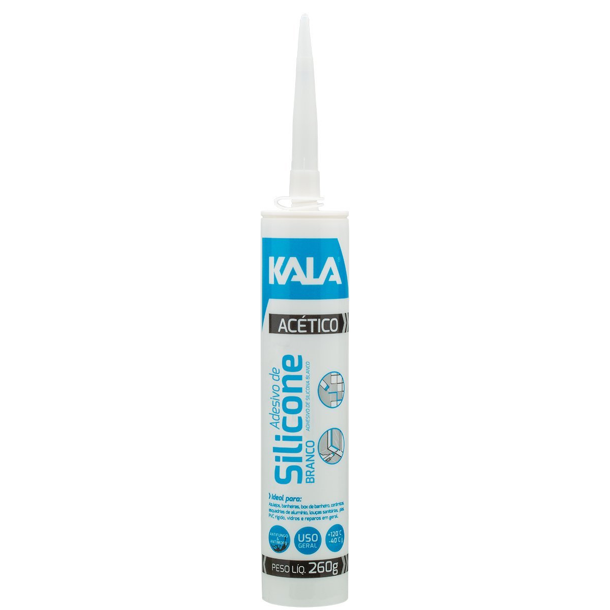Foi desenvolvido para selar, vedar e calafetar uma infinidade de materiais, preferencialmente não porosos. Resiste às variações de temperatura, água, maresia e produtos de limpeza. Suporta torções, tensões, absorve impactos, fixa e preenche espaços. Usado para evitar infiltrações de água, vedar box e esquadrias de alumínio, cascos de barcos, pias, ralos, sifões, calhas, janelas e telhas, bem como para isolamento elétrico, vedação de infiltrações em automóveis, etc.Composição: Selante à base de silicone de cura ácida.