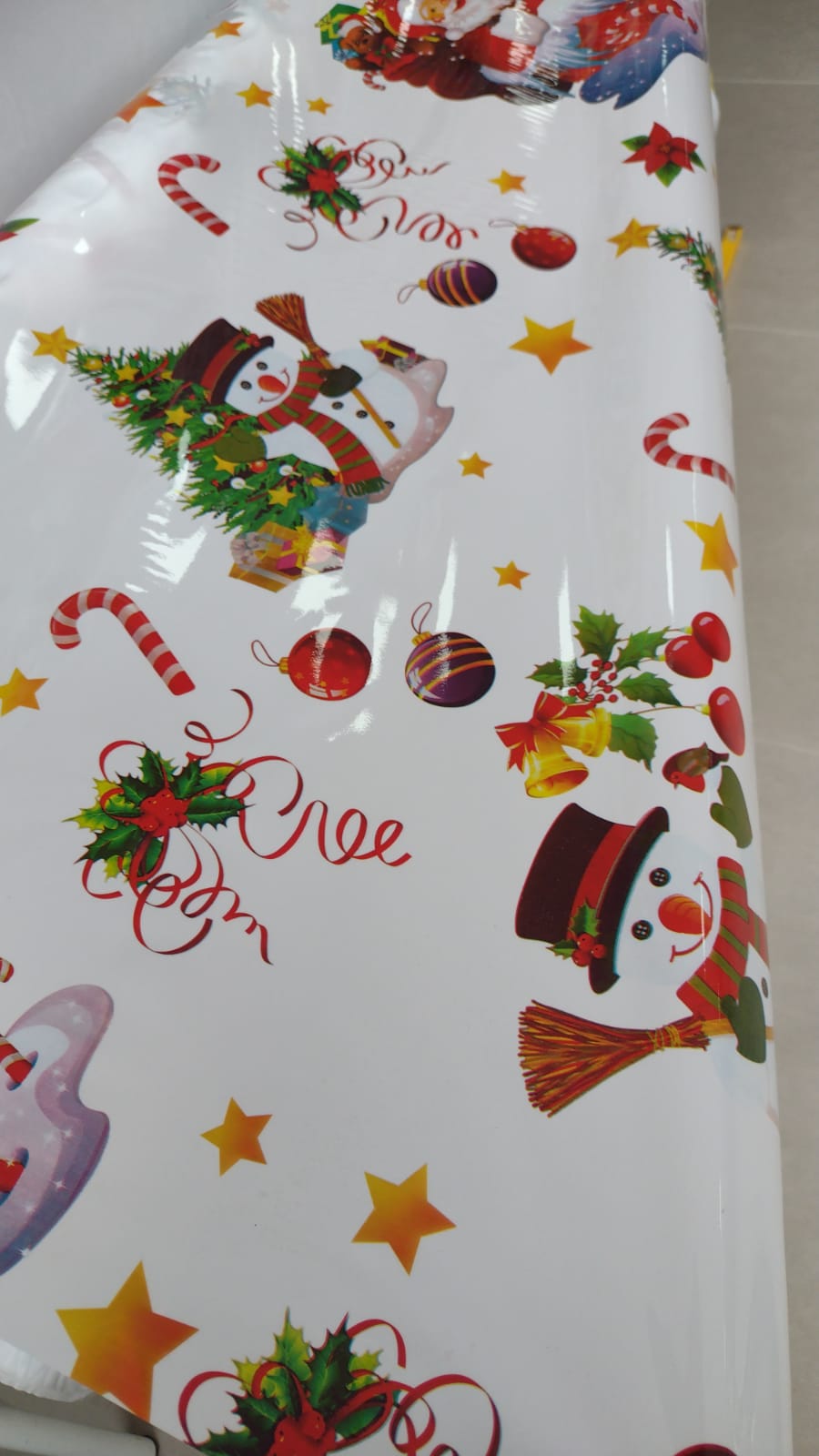 A toalha para mesa, tem tema bem colorido e especial para natal, principal cor no branco com diversas estampas, e tem a função de decorar e principalmente protege sua mesa no uso do dia a dia.